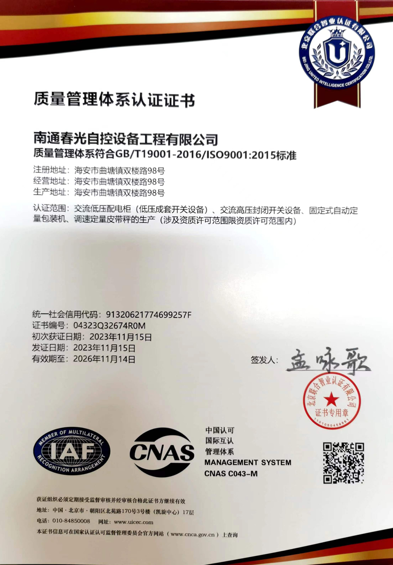 交流低壓配電柜認(rèn)證證書